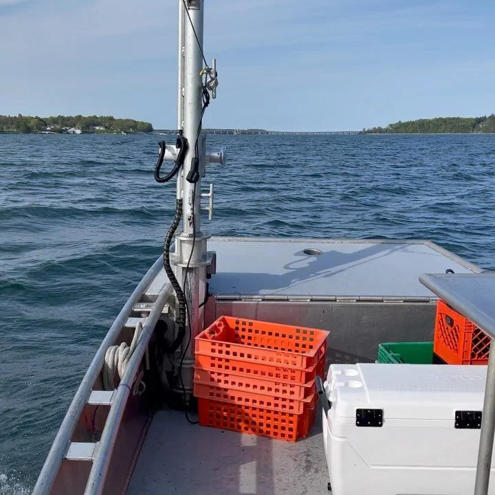 A spin around Casco Bay always affords wildlife viewing opportunities. The rich algae that feeds our oysters also provides the photosynthesizing base for a diverse food web. We see vast shoals of Menhaden around the farm, and these silvery filter feeding fish are never alone.